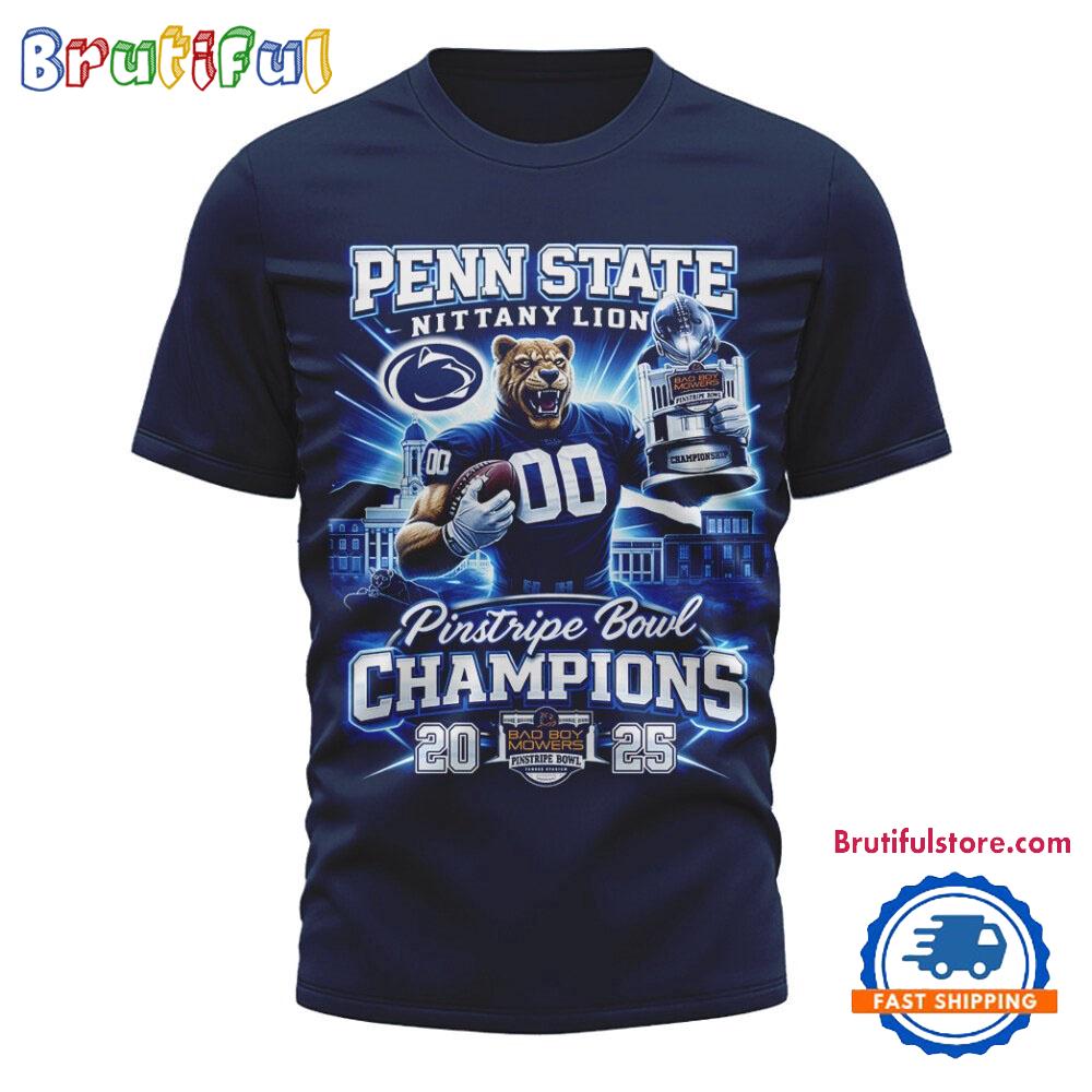 Product details: Penn State Nittany Lions 2025 Pinstripe Bowl Champions Mascot Design 3D Shirt