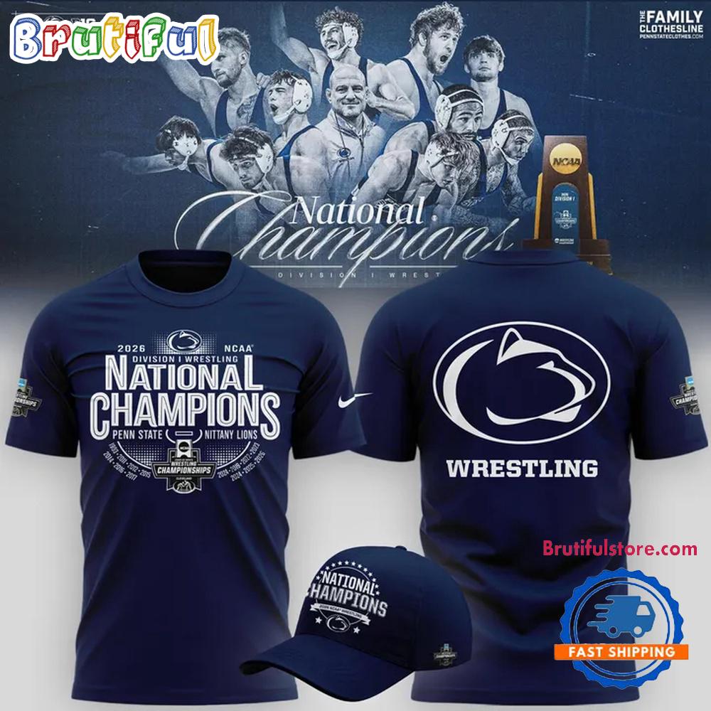 Product details: Penn State Nittany Lions 2026 NCAA Wrestling National Champions Logo Design T Shirt