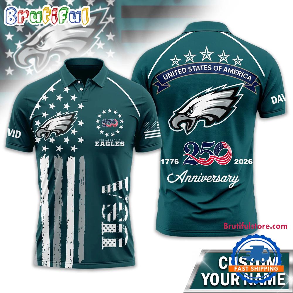 Philadelphia Eagles 2026 NFL American Semiquincentennial 250th Anniversary Polo Shirt The Polo Shirt is the epitome of casual sophistication. Crafted with a blend of comfort and style, it offers a versatile wardrobe essential. The classic collar and button-up design effortlessly bridge the gap between relaxed and polished. Made from premium fabrics, they provide a comfortable fit while maintaining a refined look. Whether for a smart-casual office day or a weekend outing, Polo Shirts deliver an effortless ensemble that exudes confidence and timeless charm, making them a must-have for any fashion-forward individual.