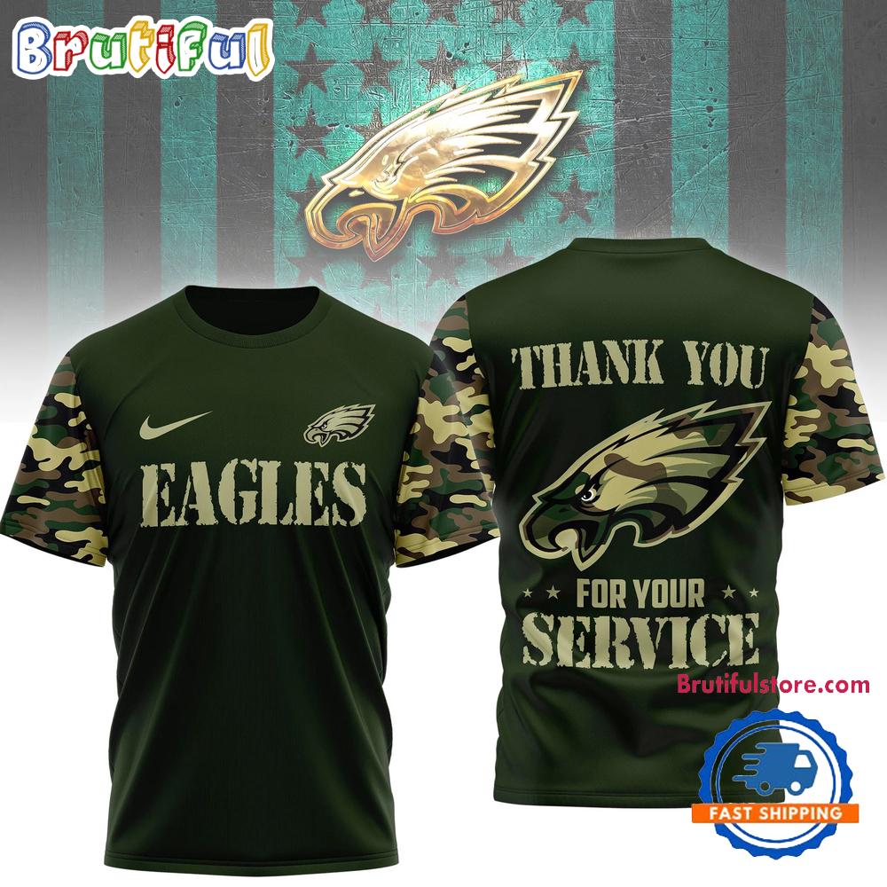 Product details: Philadelphia Eagles 2026 NFL Camouflage Thank You For Service Limited 3D Shirt