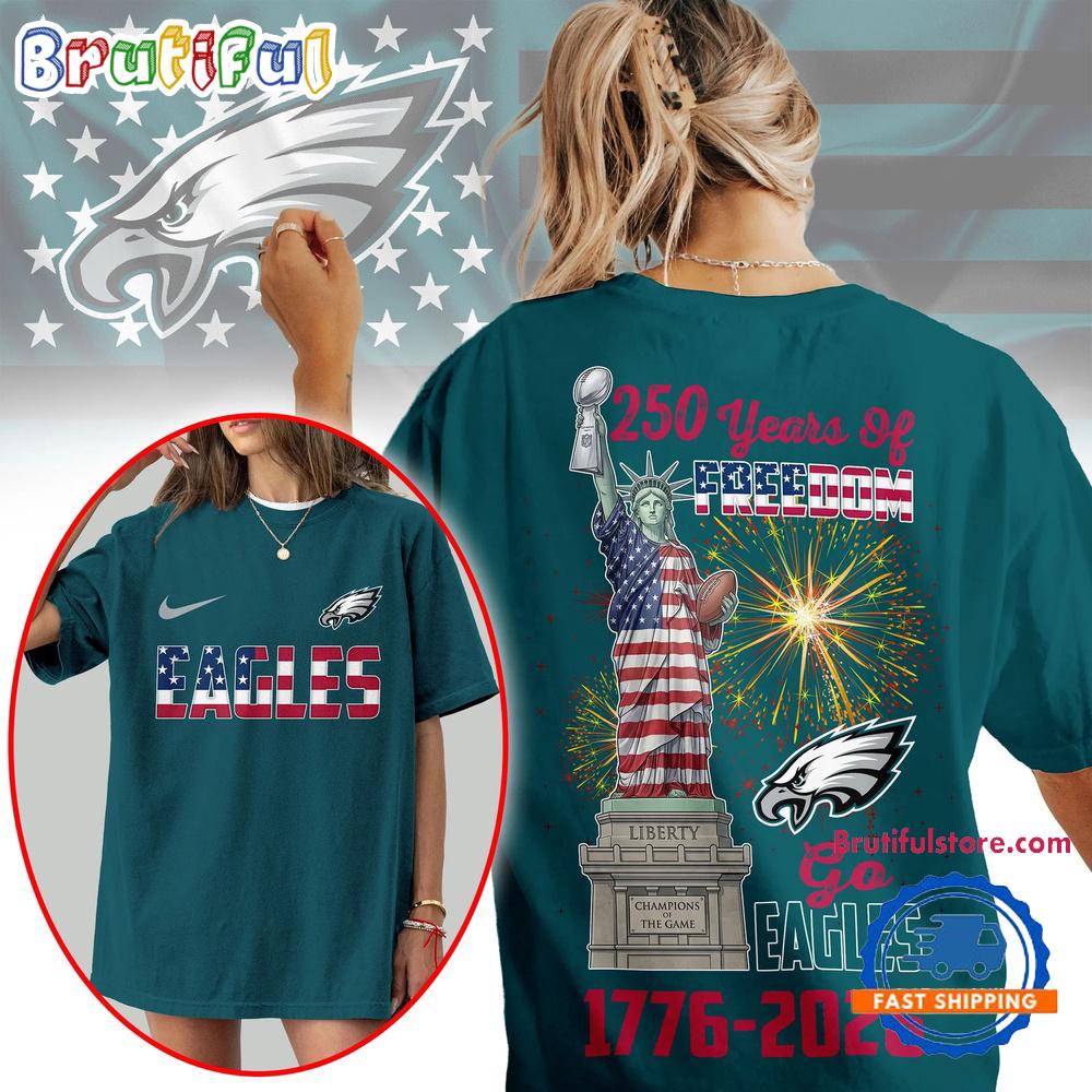 Product details: Philadelphia Eagles 2026 NFL Statue Of Liberty 250th Anniversary Unisex 3D Shirt