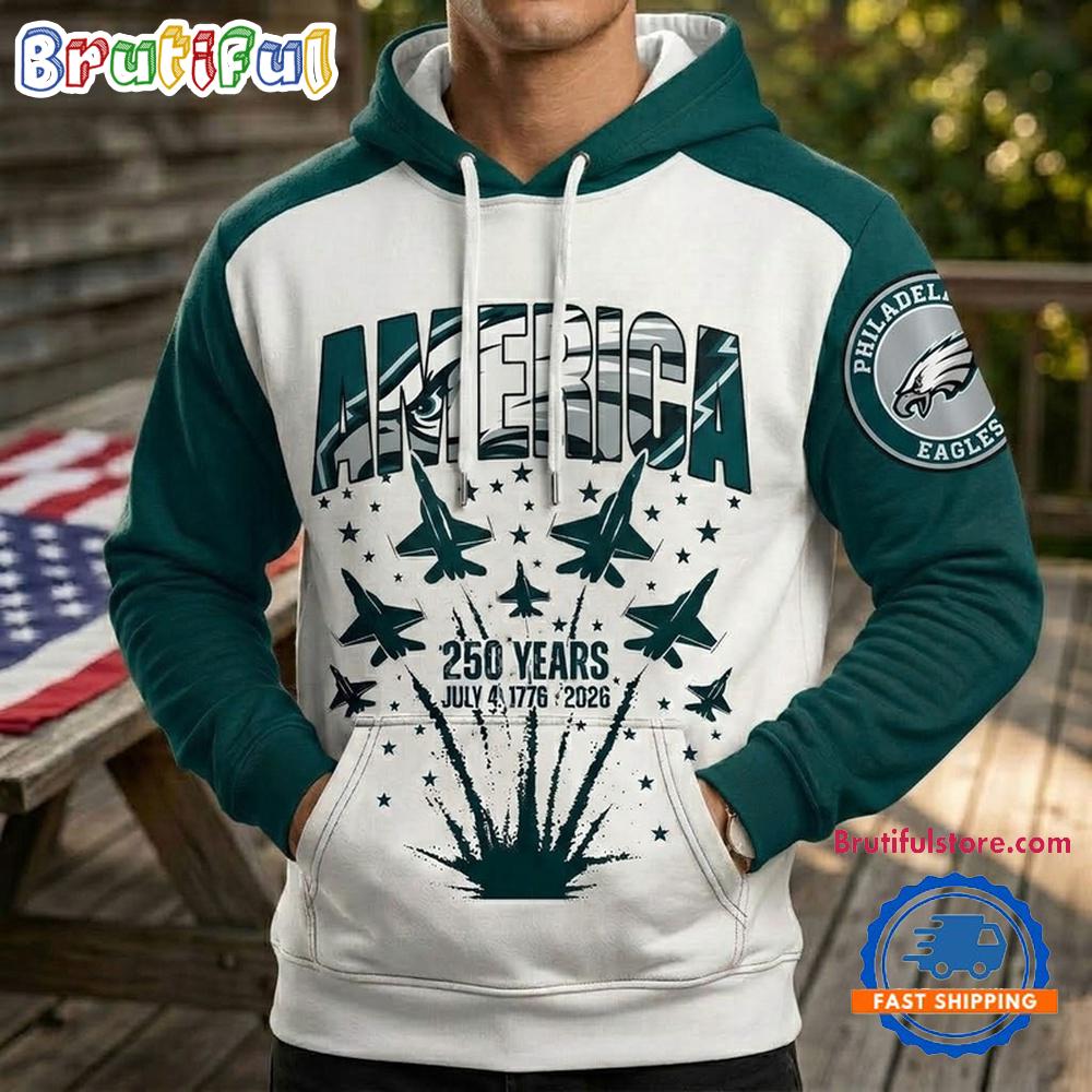 Product details: Philadelphia Eagles 250th Anniversary of US All Over Printed Hoodie Shirt