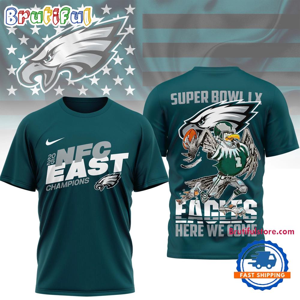 Product details: Philadelphia Eagles NFL 2025 Division Champions 3D Shirt, Super Bowl LX Eagles Here We Come Shirt