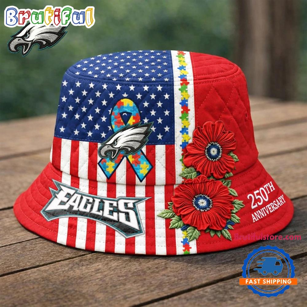 Photos Of Philadelphia Eagles NFL Autism America 250th Anniversary Bucket Hat