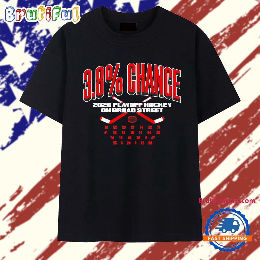 Philadelphia Flyers 3.8% chance 2026 playoff hockey on broad street T Shirt Make a bold statement with our 2D Shirt. Crafted from premium, lightweight fabric, it offers all-day comfort and a modern fit. Featuring eye-catching, high-resolution designs, this shirt is perfect for casual wear or standing out at events. Style meets personality with this unique wardrobe must-have.