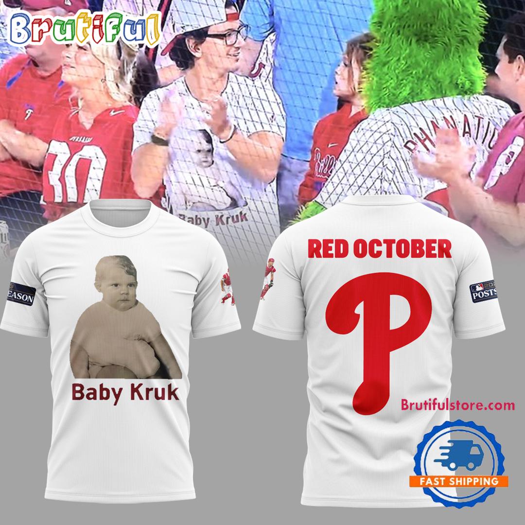 Philadelphia Phillies 2024 Baby Kruk Red October T Shirt The 3D Hoodie is a fashion statement that goes beyond the ordinary. Using advanced printing technology, it brings designs to life with depth and vividness. Crafted from high-quality materials, it offers comfort and durability. The three-dimensional graphics create a captivating effect that’s perfect for casual wear or making a bold statement. Whether you’re expressing your fandom or showcasing your unique taste, the 3D Hoodie is a wearable work of art that sets you apart from the crowd. Embrace both style and individuality with this distinctive fashion piece.