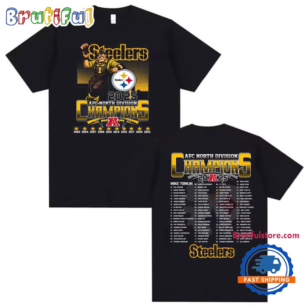 Pittsburgh Steelers 2025-26 AFC North Champions Division Mascot Vintage T Shirt Make a bold statement with our 2D Shirt. Crafted from premium, lightweight fabric, it offers all-day comfort and a modern fit. Featuring eye-catching, high-resolution designs, this shirt is perfect for casual wear or standing out at events. Style meets personality with this unique wardrobe must-have.