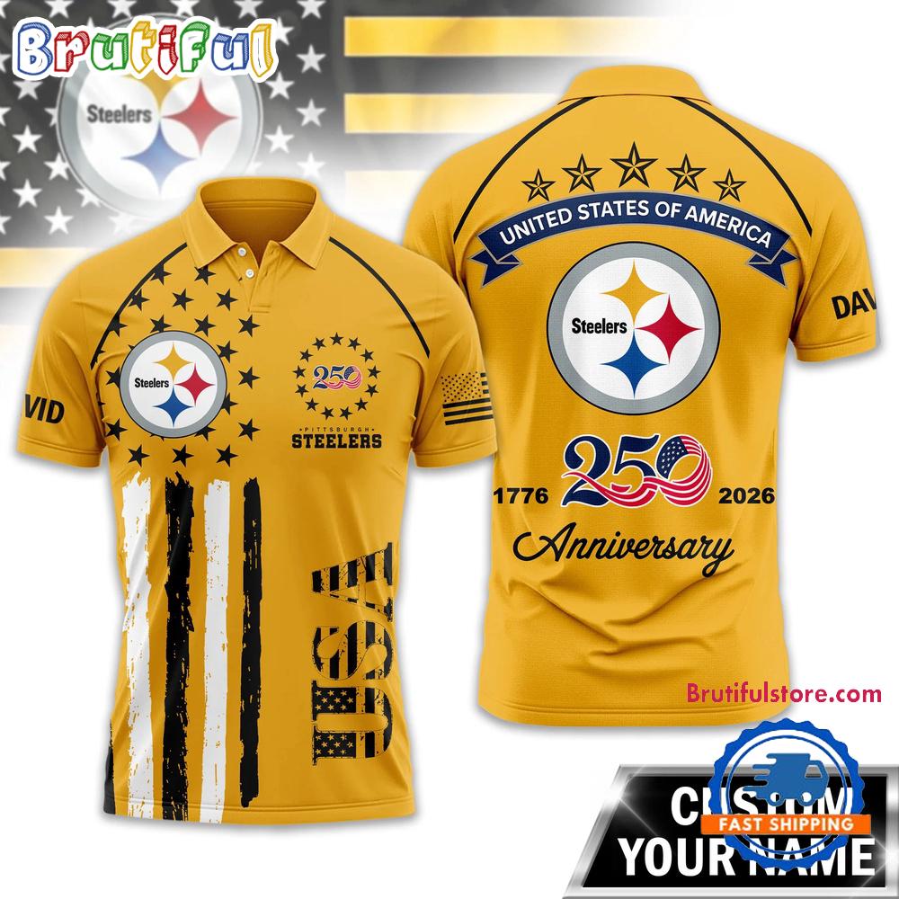 Pittsburgh Steelers 2026 NFL American Semiquincentennial 250th Anniversary Polo Shirt The Polo Shirt is the epitome of casual sophistication. Crafted with a blend of comfort and style, it offers a versatile wardrobe essential. The classic collar and button-up design effortlessly bridge the gap between relaxed and polished. Made from premium fabrics, they provide a comfortable fit while maintaining a refined look. Whether for a smart-casual office day or a weekend outing, Polo Shirts deliver an effortless ensemble that exudes confidence and timeless charm, making them a must-have for any fashion-forward individual.