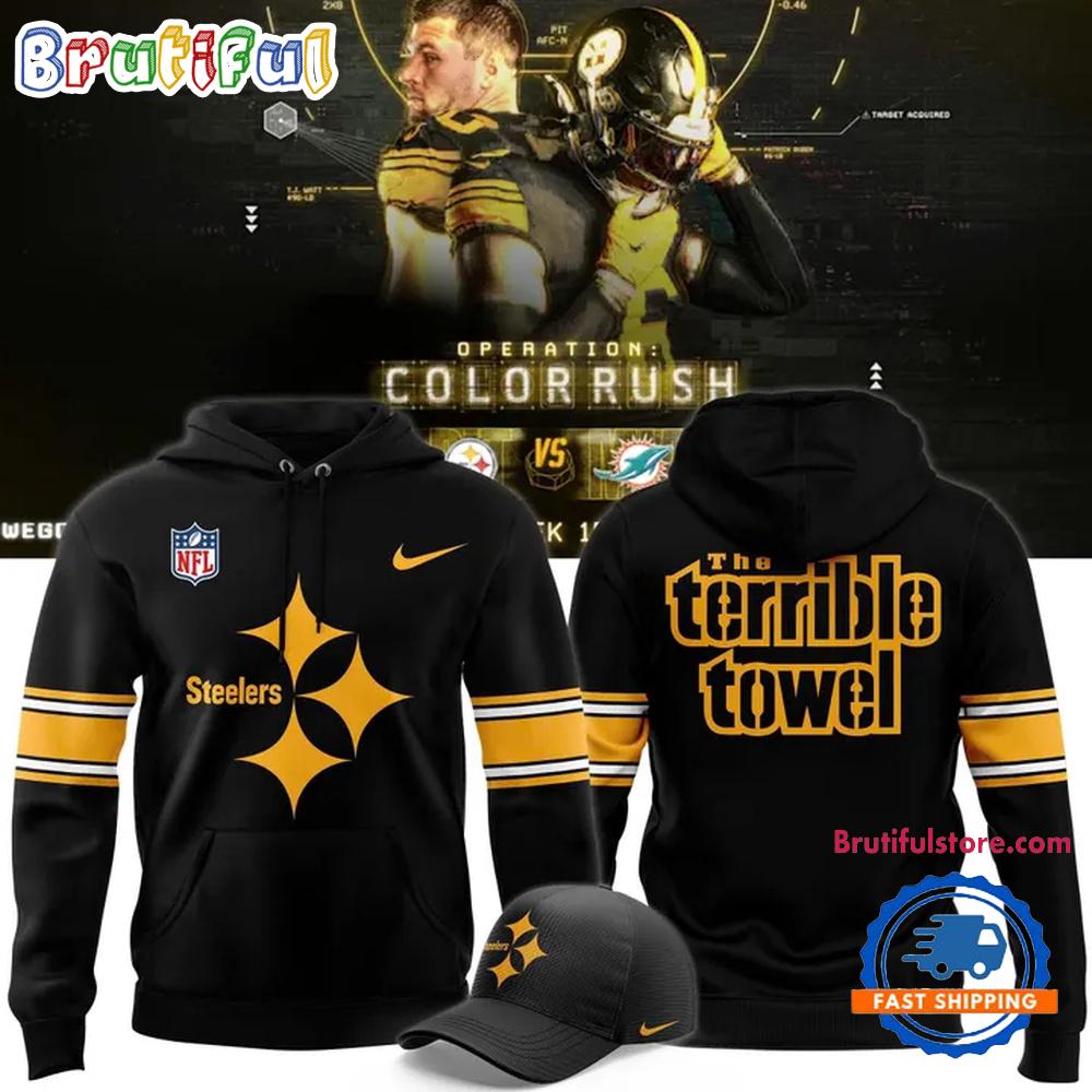 Pittsburgh Steelers Color Rush Terrible Towel Hoodie Shirt The 3D Hoodie is a fashion statement that goes beyond the ordinary. Using advanced printing technology, it brings designs to life with depth and vividness. Crafted from high-quality materials, it offers comfort and durability. The three-dimensional graphics create a captivating effect that’s perfect for casual wear or making a bold statement. Whether you’re expressing your fandom or showcasing your unique taste, the 3D Hoodie is a wearable work of art that sets you apart from the crowd. Embrace both style and individuality with this distinctive fashion piece.