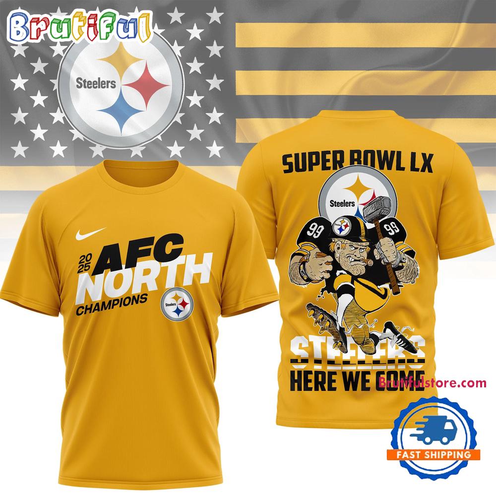Product details: Pittsburgh Steelers NFL 2025 Division Champions 3D Shirt, Super Bowl LX Steelers Here We Come Shirt