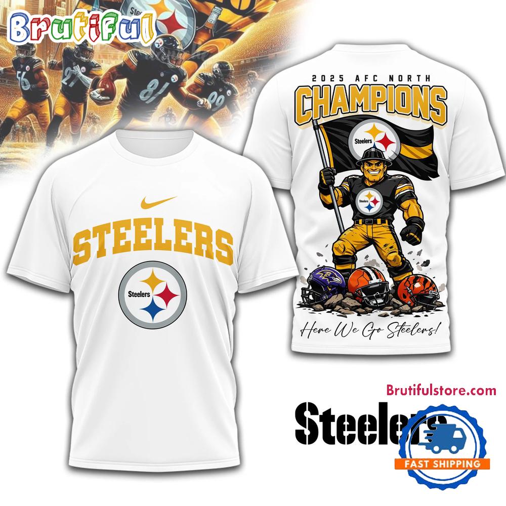 Product details: Pittsburgh Steelers NFL AFC North Champions 2025-2026 White 3D Shirt