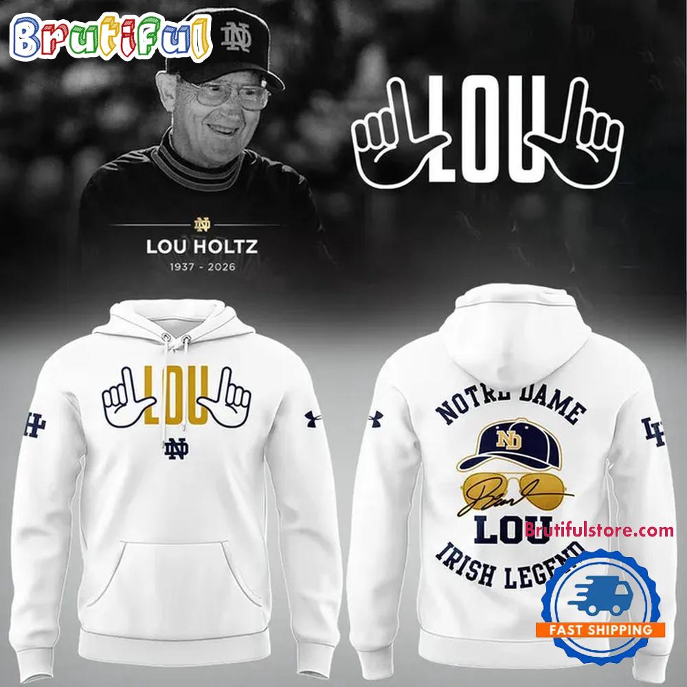 Photos Of RIP Lou Holtz 2026 Thank You For The Memories Notre Dame Fighting Irish Football Hoodie