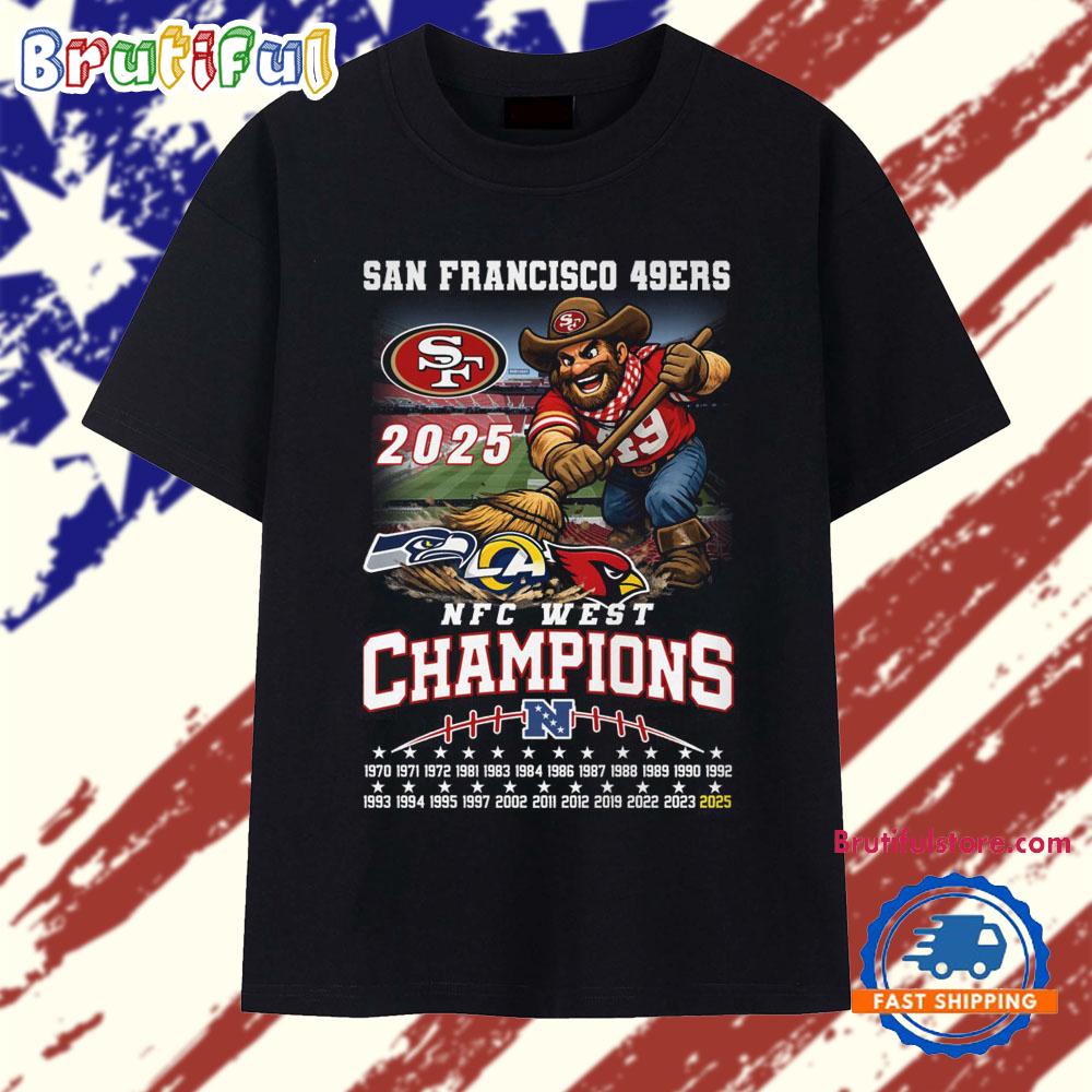 Product details: San Francisco 49ers 2025 NFC West Champions Mascot Vintage T Shirt