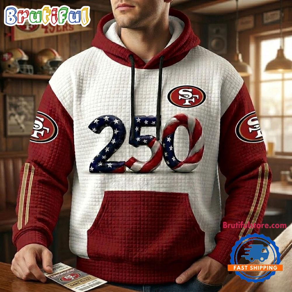 San Francisco 49ers 250th Anniversary of American 2026 Hoodie The 3D Hoodie is a fashion statement that goes beyond the ordinary. Using advanced printing technology, it brings designs to life with depth and vividness. Crafted from high-quality materials, it offers comfort and durability. The three-dimensional graphics create a captivating effect that’s perfect for casual wear or making a bold statement. Whether you’re expressing your fandom or showcasing your unique taste, the 3D Hoodie is a wearable work of art that sets you apart from the crowd. Embrace both style and individuality with this distinctive fashion piece.