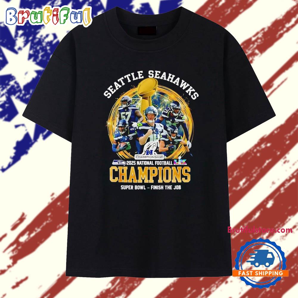 Product details: Seattle Seahawks 2025 National Football Champions Super Bowl Finish The Job T Shirt