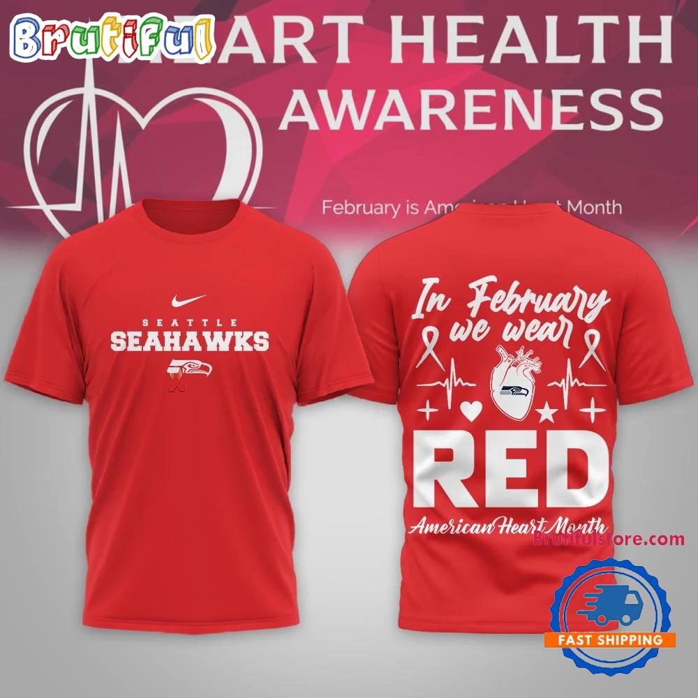 Product details: Seattle Seahawks 2026 NFL February is American Heart Month Limited Edition 3D Shirt