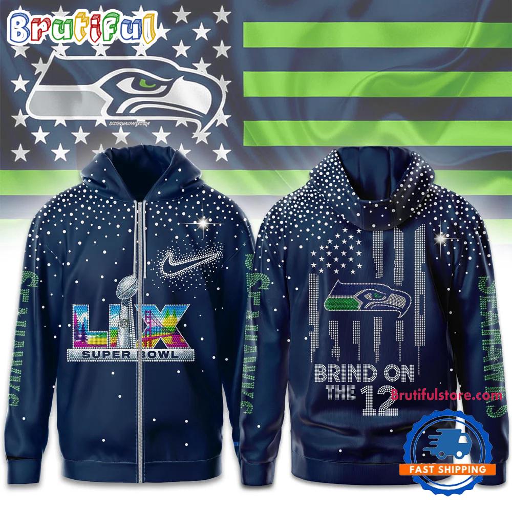 Product details: Seattle Seahawks NFL 2026 Super Bowl Brind on the 12 Zip Hoodie Shirt