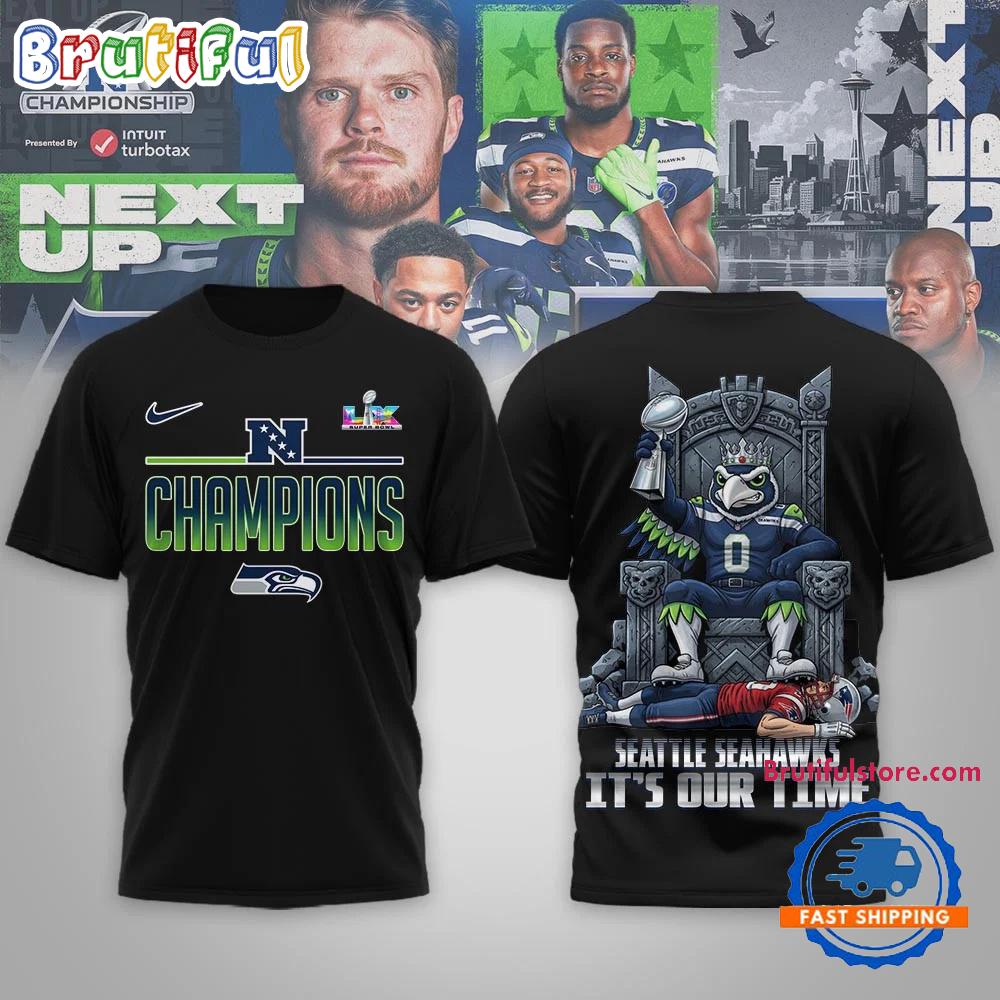 Product details: Seattle Seahawks NFL 2026 Super Bowl LX It’s Our Time Black T Shirt