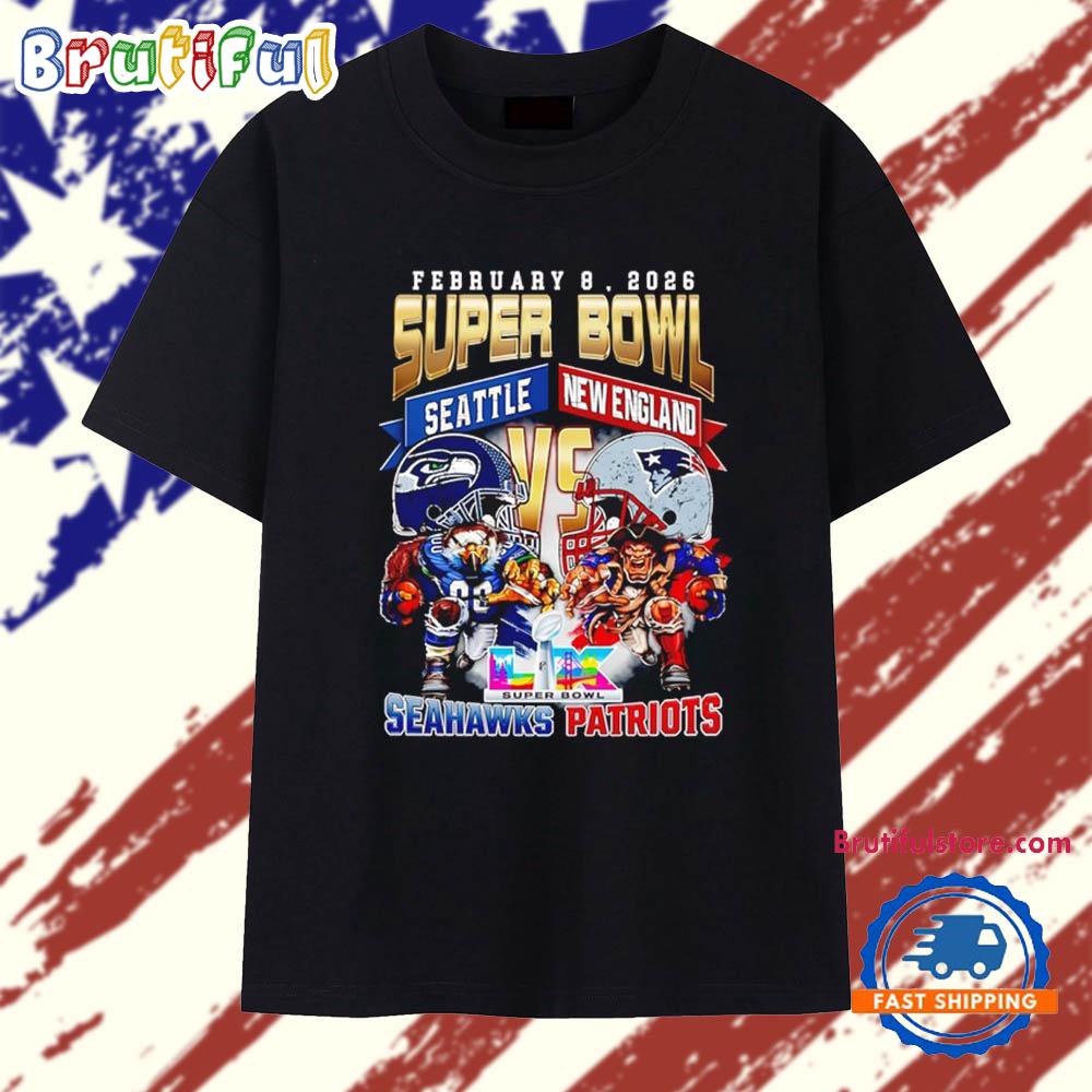 Product details: Seattle Seahawks vs New England Patriots 2026 Super Bowl LX Showdown T Shirt