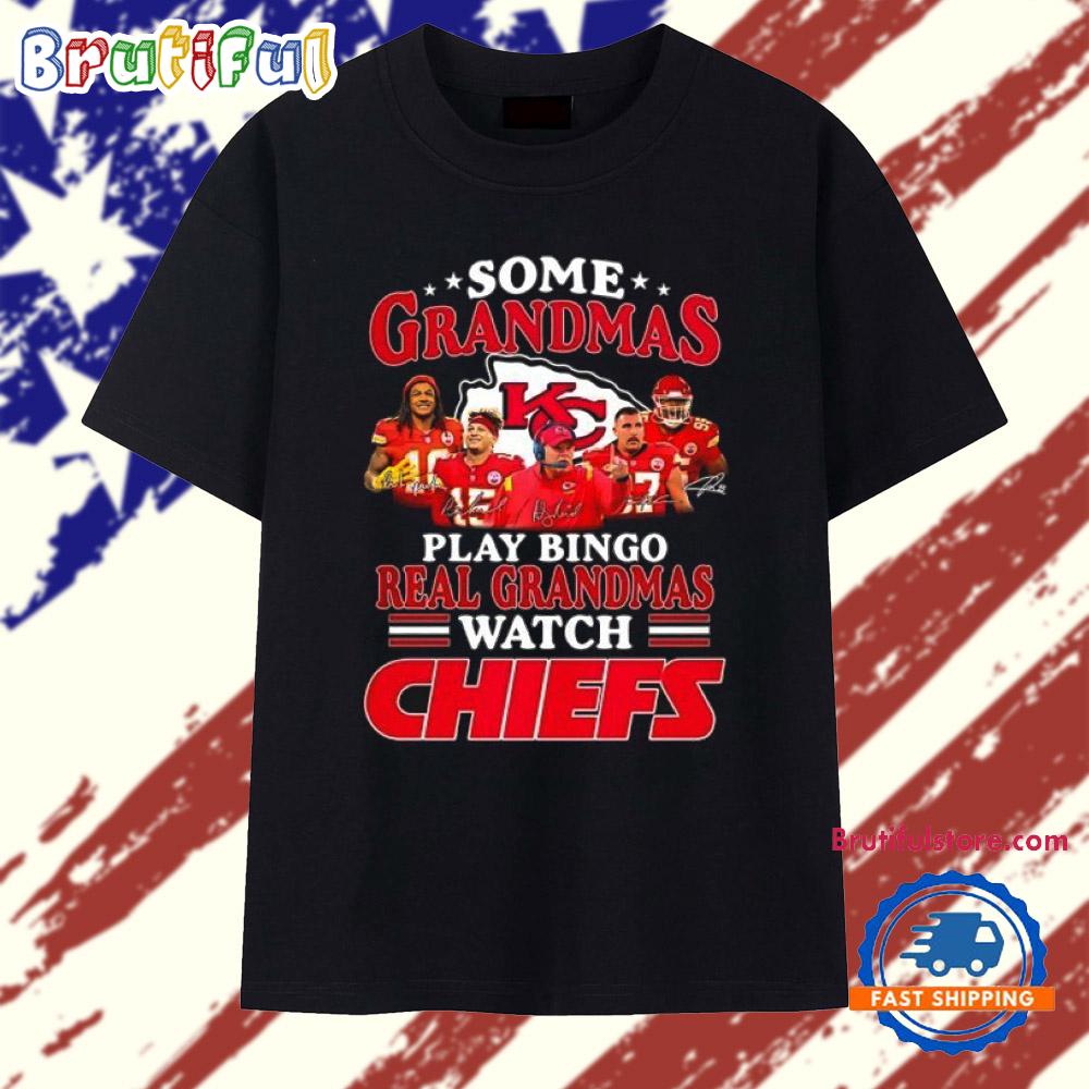 Some grandmas play bingo real grandmas watch Kansas City Chiefs signatures 2026 T Shirt Make a bold statement with our 2D Shirt. Crafted from premium, lightweight fabric, it offers all-day comfort and a modern fit. Featuring eye-catching, high-resolution designs, this shirt is perfect for casual wear or standing out at events. Style meets personality with this unique wardrobe must-have.