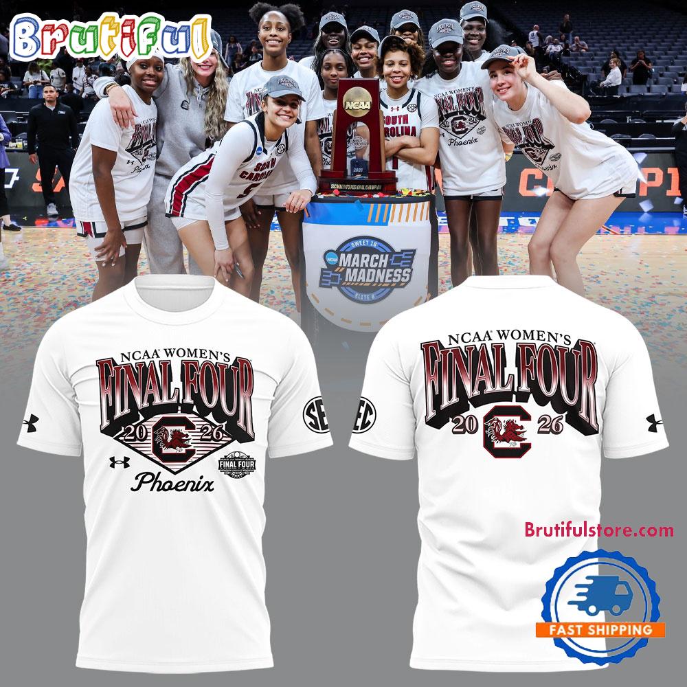 Product details: South Carolina Gamecocks Women’s Basketball 2026 NCAA FINAL FOUR White T Shirt