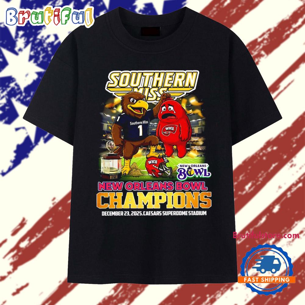 Photos Of Southern Miss beat Western Kentucky 2026 New Orleans Bowl Champions mascot T Shirt