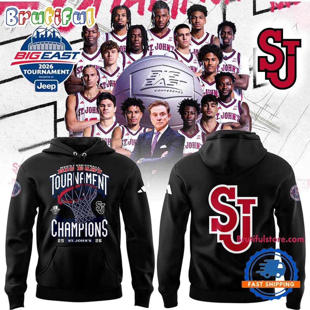 Product details: St John’s Red Storm Men’s Basketball 2026 Big East Tournament Champions New Design Hoodie