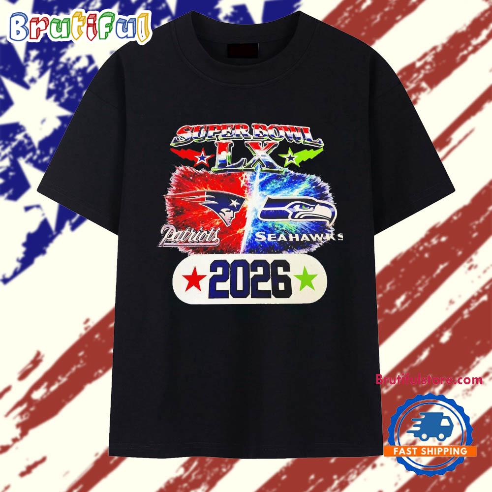 Super Bowl LX New England Patriots vs Seattle Seahawks 2026 logo T Shirt Make a bold statement with our 2D Shirt. Crafted from premium, lightweight fabric, it offers all-day comfort and a modern fit. Featuring eye-catching, high-resolution designs, this shirt is perfect for casual wear or standing out at events. Style meets personality with this unique wardrobe must-have.