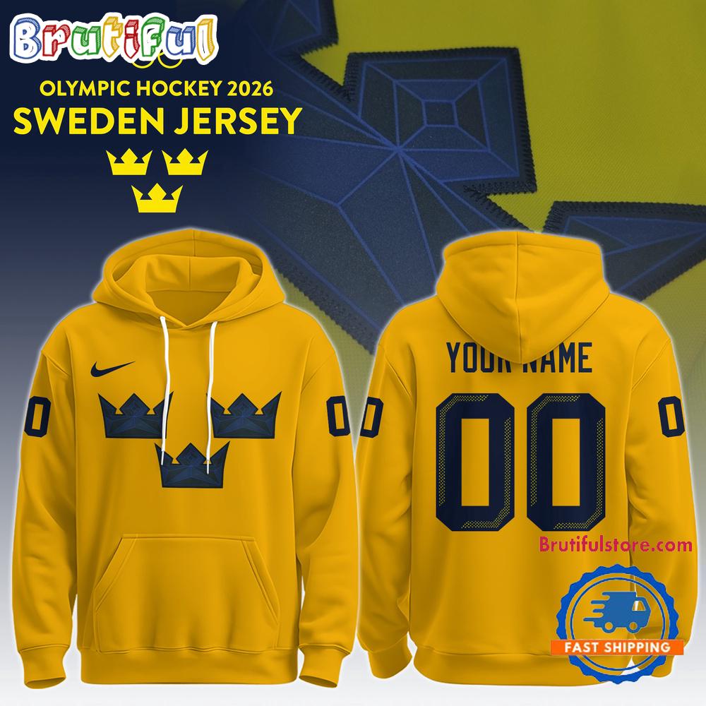 Product details: Sweden 2026 Olympic Hockey Limited Edition Yellow Hoodie