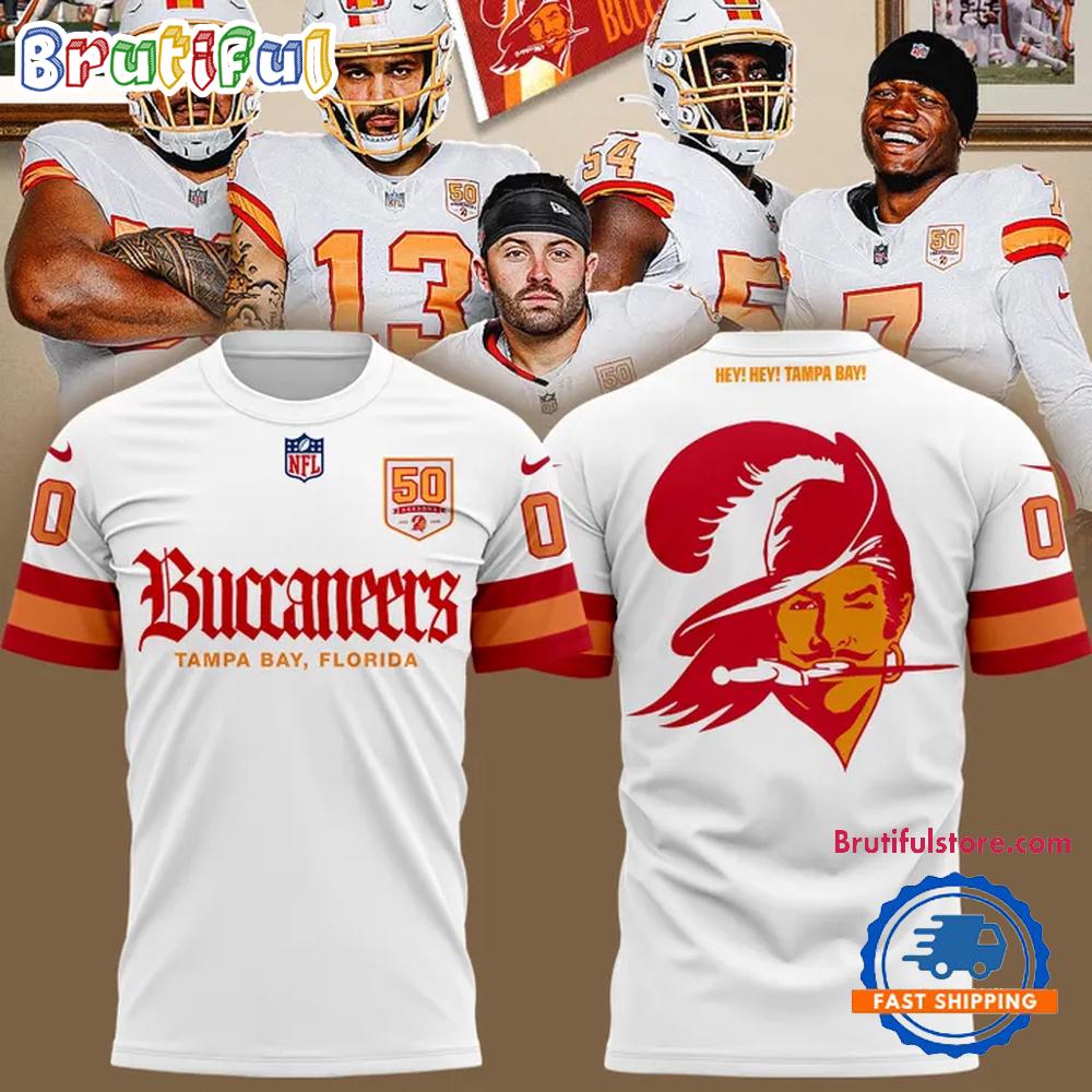Product details: Tampa Bay Buccaneers 50th Season Essential White T Shirt