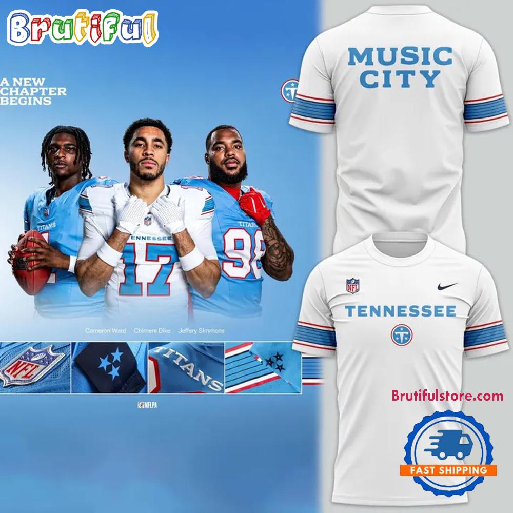 Tennessee Titans Music City White Uniform 2026 T Shirt The 3D Hoodie is a fashion statement that goes beyond the ordinary. Using advanced printing technology, it brings designs to life with depth and vividness. Crafted from high-quality materials, it offers comfort and durability. The three-dimensional graphics create a captivating effect that’s perfect for casual wear or making a bold statement. Whether you’re expressing your fandom or showcasing your unique taste, the 3D Hoodie is a wearable work of art that sets you apart from the crowd. Embrace both style and individuality with this distinctive fashion piece.