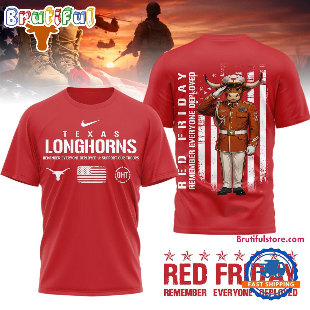Product details: Texas Longhorns NCAA Red Friday Remember Everyone Deployed Limited 3D Shirt