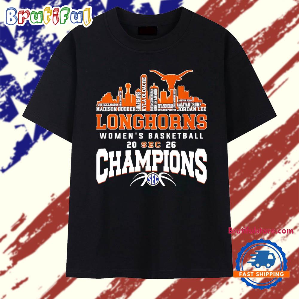 Product details: Texas Longhorns Women’s Basketball Champions 2026 player name city skyline T Shirt