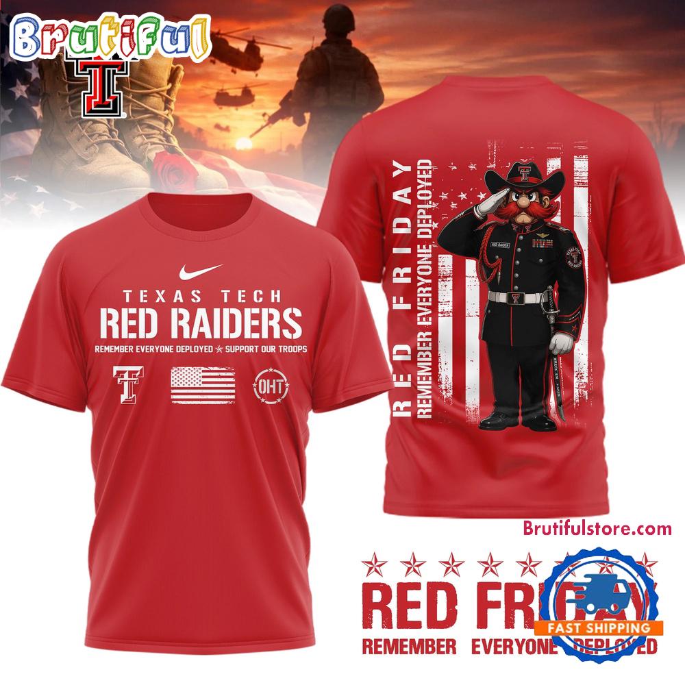 Product details: Texas Tech Red Raiders NCAA Red Friday Remember Everyone Deployed Limited 3D Shirt