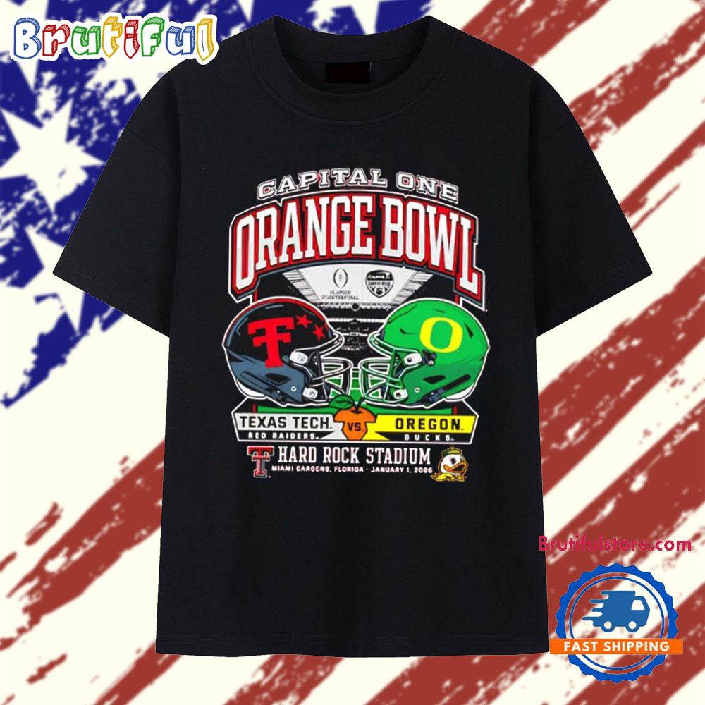 Photos Of Texas Tech vs Oregon 2025 Orange Bowl Dueling Helmets T Shirt