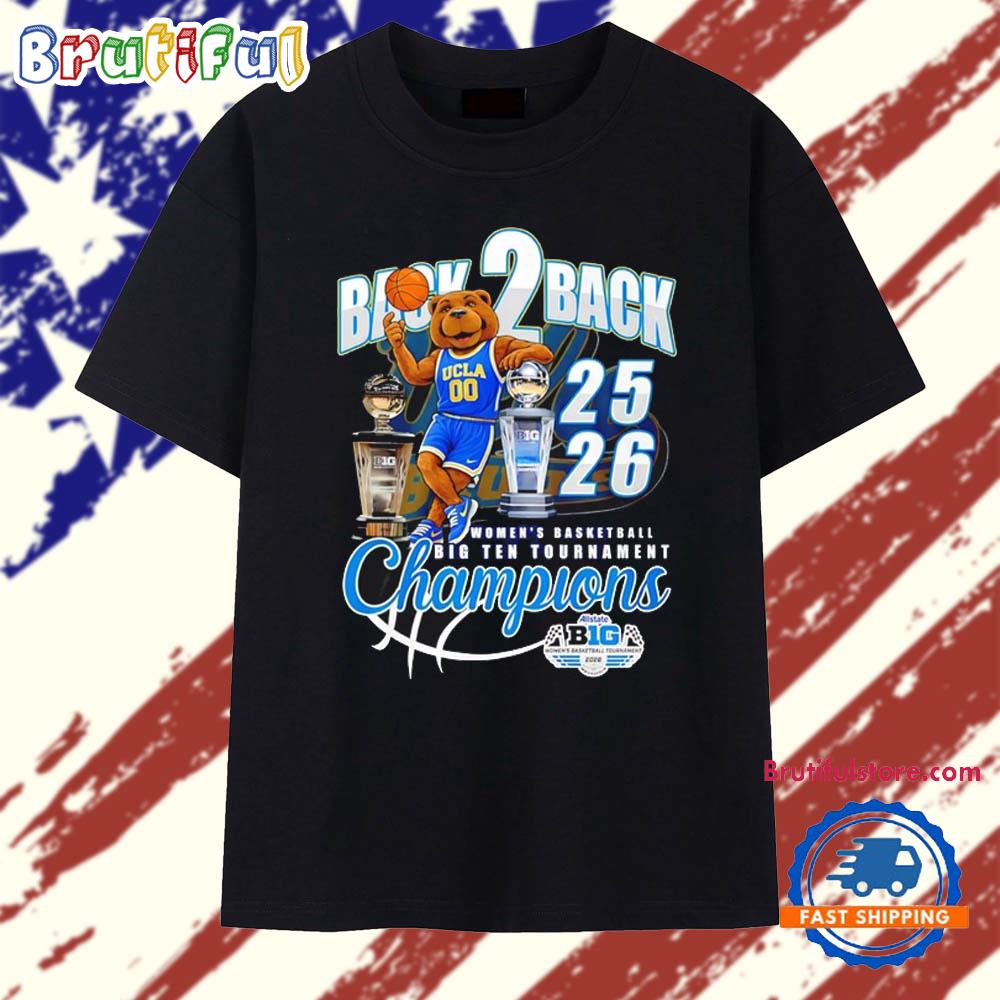 Product details: Ucla Bruins back 2 back 2025-26 Women’s Basketball Big Ten Tournament Champions mascot T Shirt
