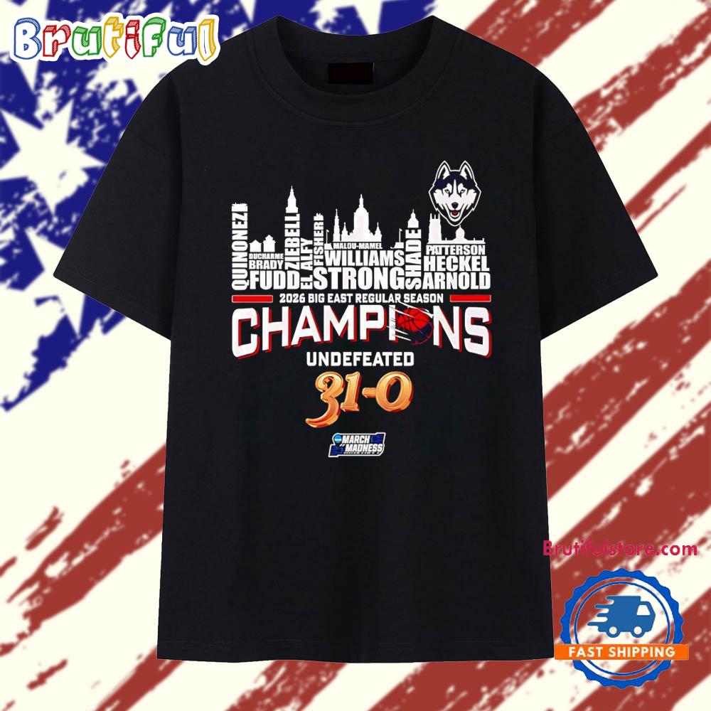 Product details: Uconn Huskies 2026 Big East Champions Undefeated 31 0 Name City Skyline T Shirt