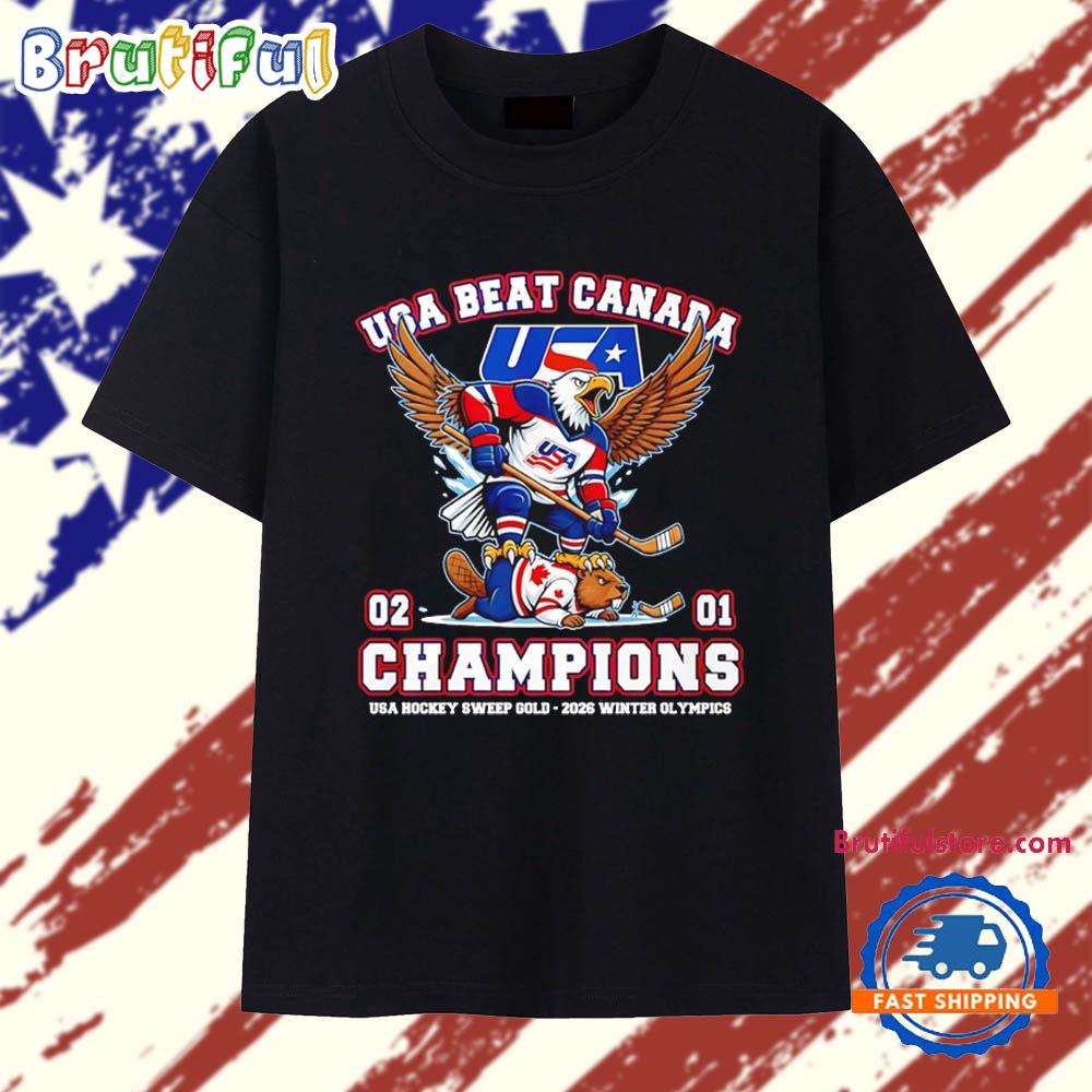 Product details: USA beat Canada 2-1 Champions USA Hockey Sweep Gold 2026 Winter Olympics T Shirt