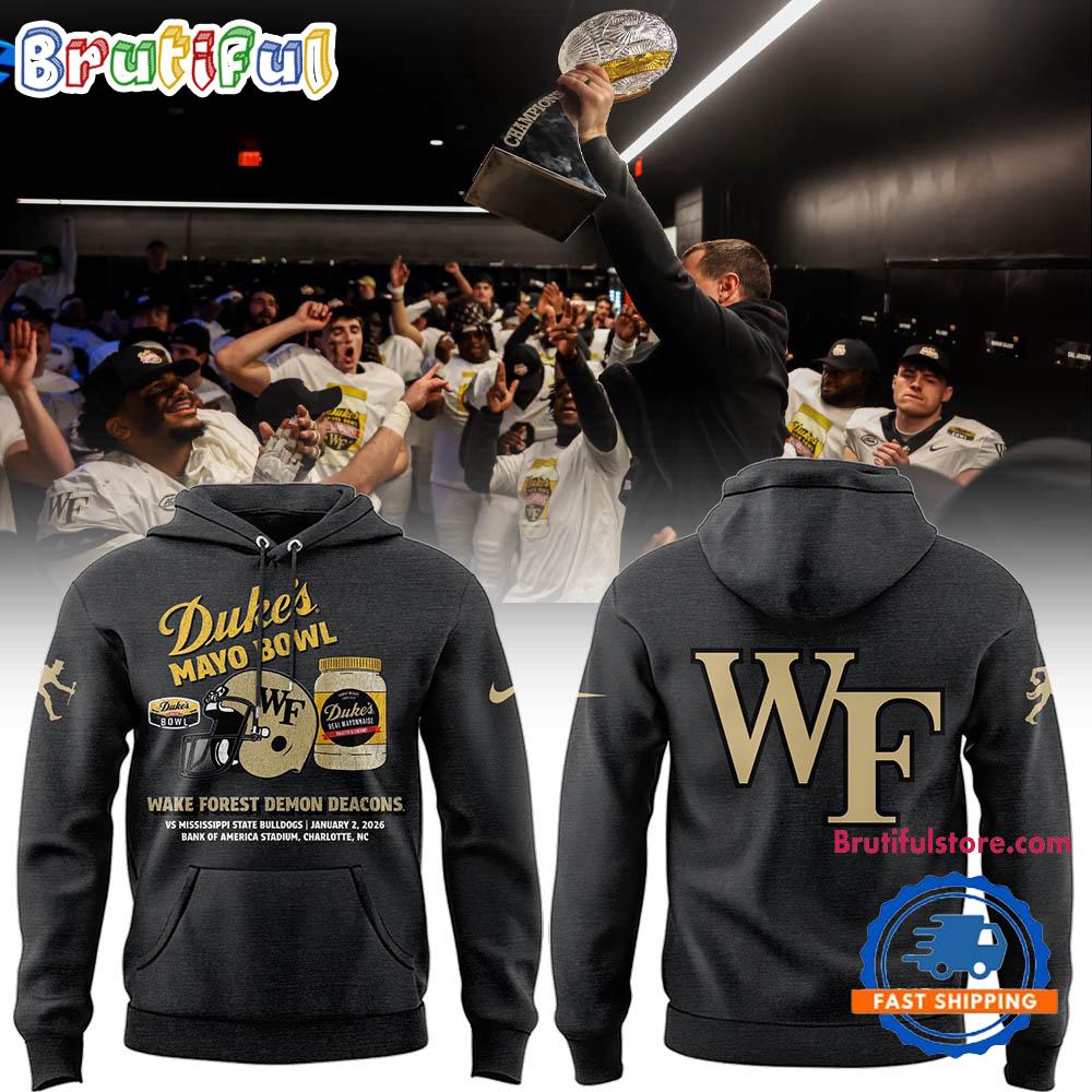 Product details: Wake Forest Demon Deacons 2026 Football Dukes Mayo Bowl Champions Black Hoodie