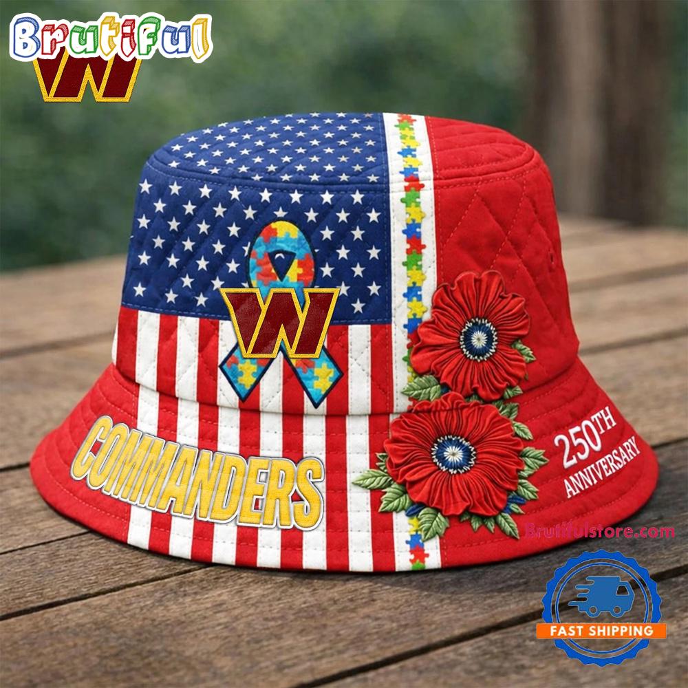 Photos Of Washington Commanders NFL Autism America 250th Anniversary Bucket Hat