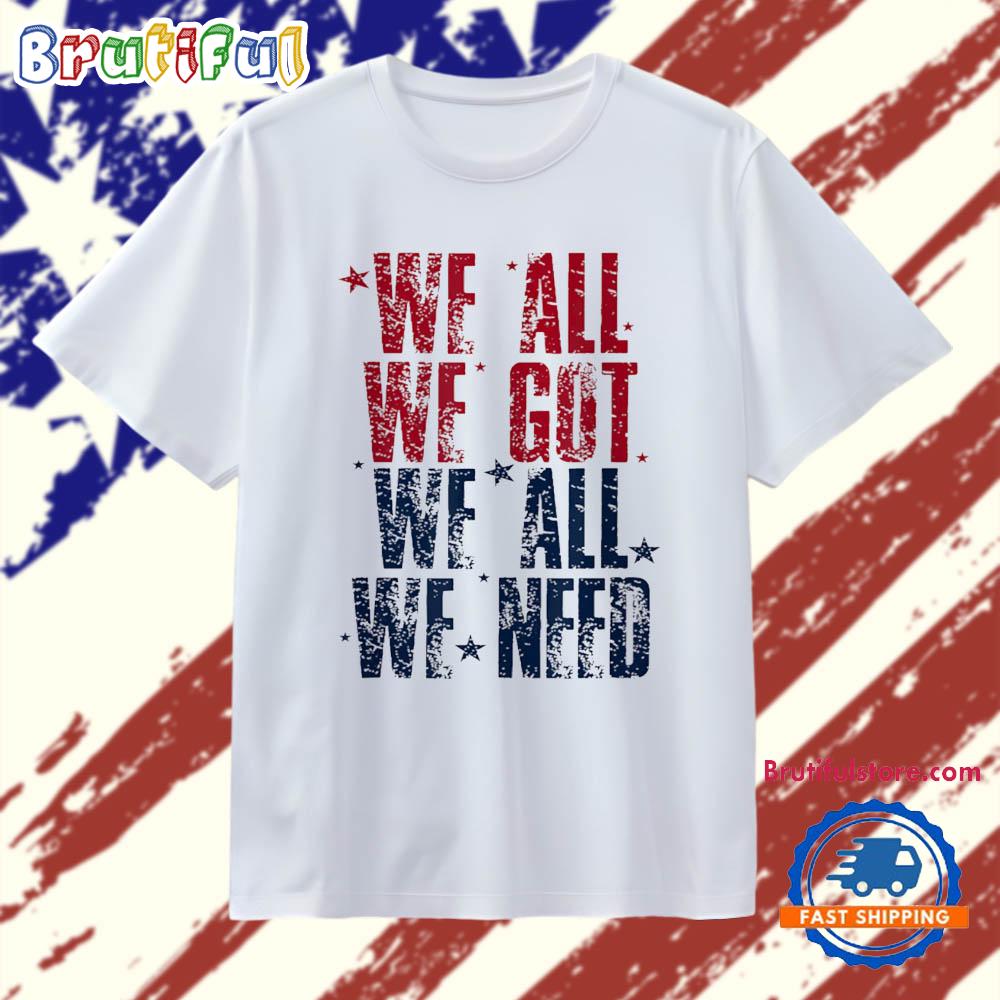 We all we got we all we need Patriot T Shirt Make a bold statement with our 2D Shirt. Crafted from premium, lightweight fabric, it offers all-day comfort and a modern fit. Featuring eye-catching, high-resolution designs, this shirt is perfect for casual wear or standing out at events. Style meets personality with this unique wardrobe must-have.
