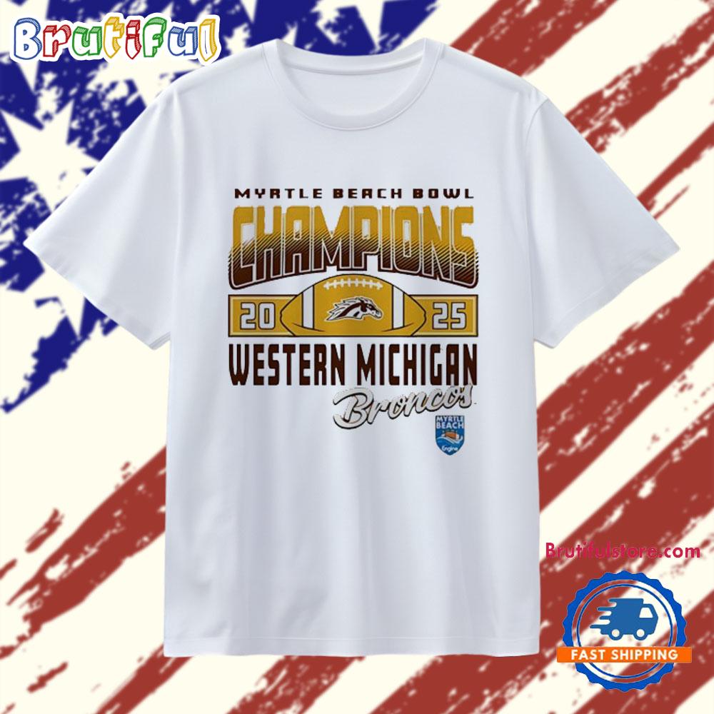 Photos Of Western Michigan Broncos 2025 Myrtle Beach Bowl Champions Logo Vintage T Shirt