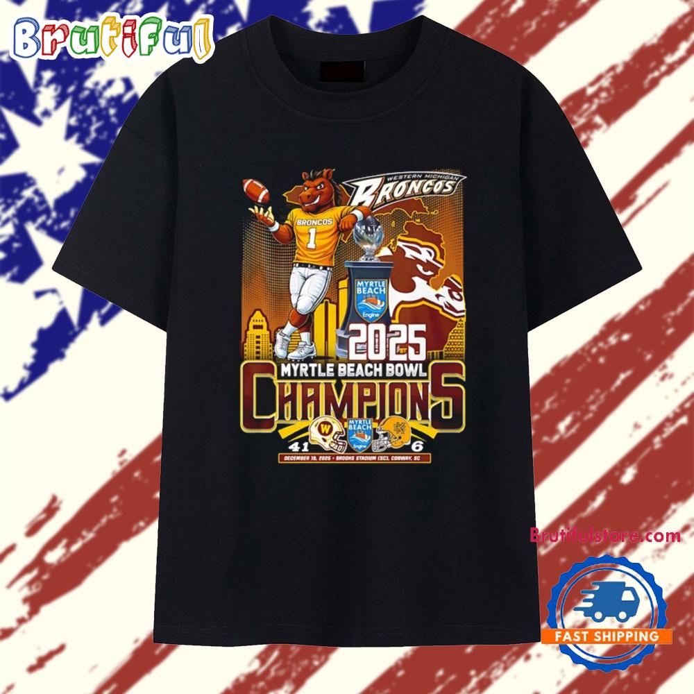 Western Michigan Broncos 2025 Myrtle Beach Bowl Champions score T Shirt Make a bold statement with our 2D Shirt. Crafted from premium, lightweight fabric, it offers all-day comfort and a modern fit. Featuring eye-catching, high-resolution designs, this shirt is perfect for casual wear or standing out at events. Style meets personality with this unique wardrobe must-have.
