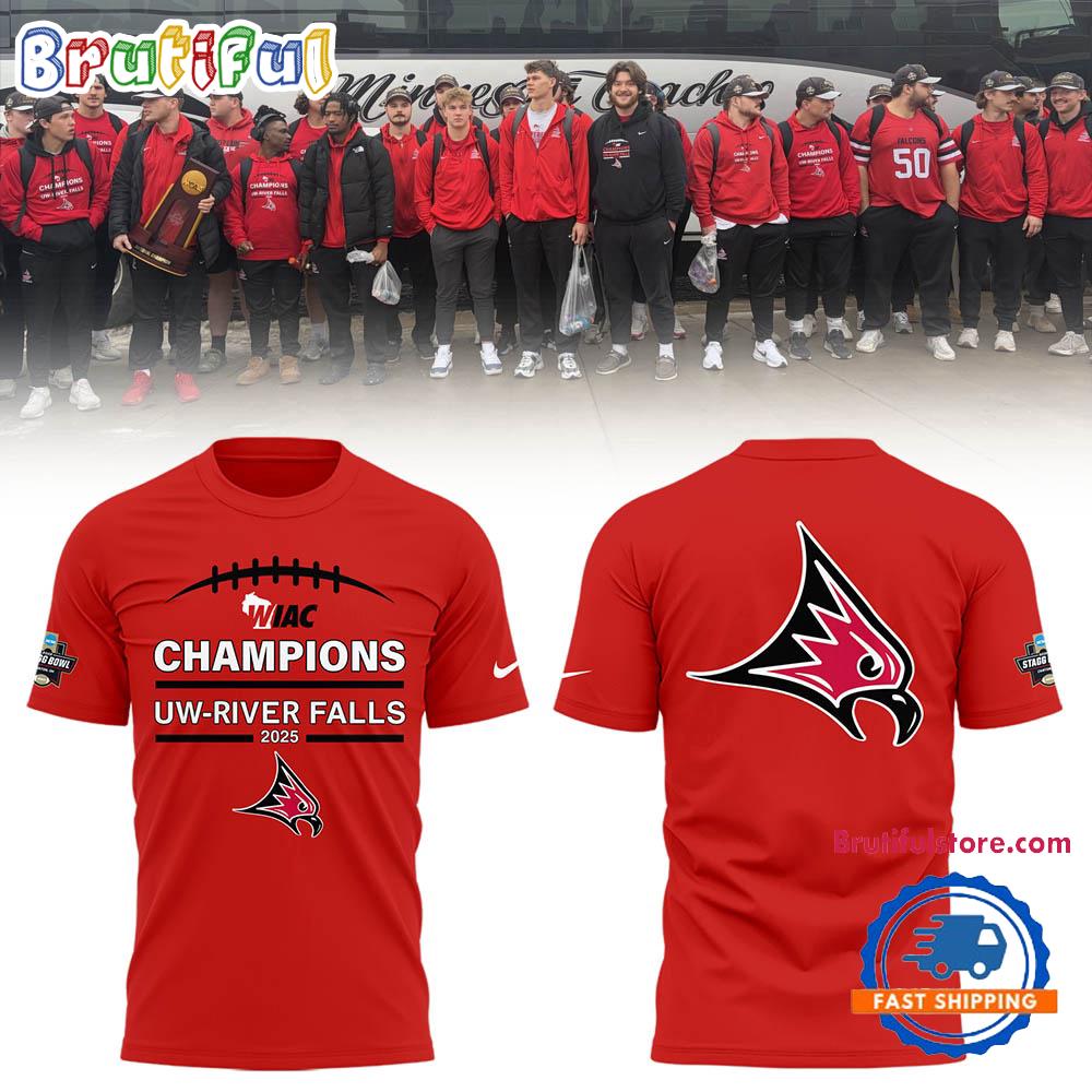 Wisconsin-River Falls Falcons Football 2025 NCAA Champions Red T Shirt The 3D Hoodie is a fashion statement that goes beyond the ordinary. Using advanced printing technology, it brings designs to life with depth and vividness. Crafted from high-quality materials, it offers comfort and durability. The three-dimensional graphics create a captivating effect that’s perfect for casual wear or making a bold statement. Whether you’re expressing your fandom or showcasing your unique taste, the 3D Hoodie is a wearable work of art that sets you apart from the crowd. Embrace both style and individuality with this distinctive fashion piece.