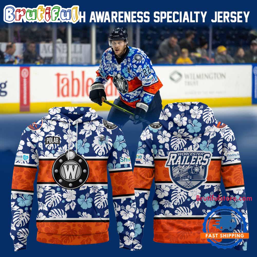 Product details: Worcester Railers Mental Health Awareness Specialty Hoodie Shirt