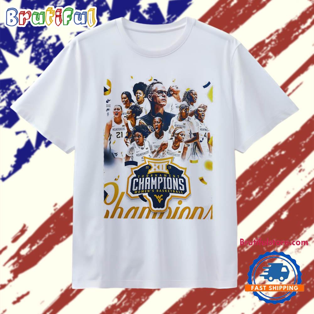 Product details: WVU West Virginia Mountaineers Women’s Basketball 2026 Big 12 Tournament Champions poster T Shirt