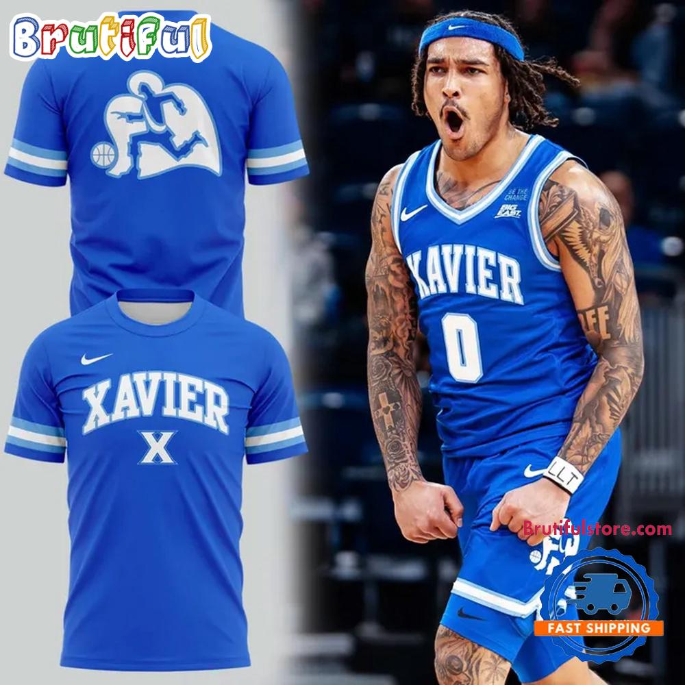 Xavier Musketeers 2026 Basketball Running Man Uniform Special Edition T Shirt The 3D Hoodie is a fashion statement that goes beyond the ordinary. Using advanced printing technology, it brings designs to life with depth and vividness. Crafted from high-quality materials, it offers comfort and durability. The three-dimensional graphics create a captivating effect that’s perfect for casual wear or making a bold statement. Whether you’re expressing your fandom or showcasing your unique taste, the 3D Hoodie is a wearable work of art that sets you apart from the crowd. Embrace both style and individuality with this distinctive fashion piece.